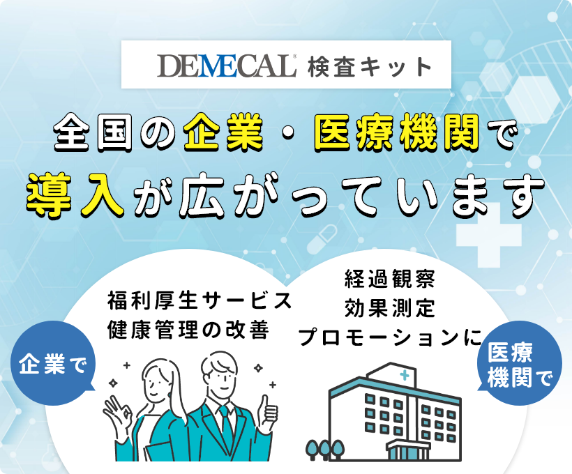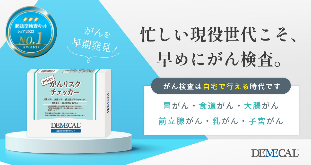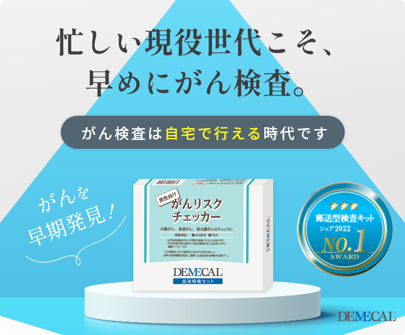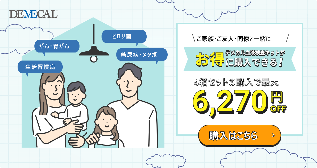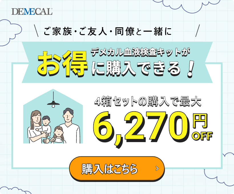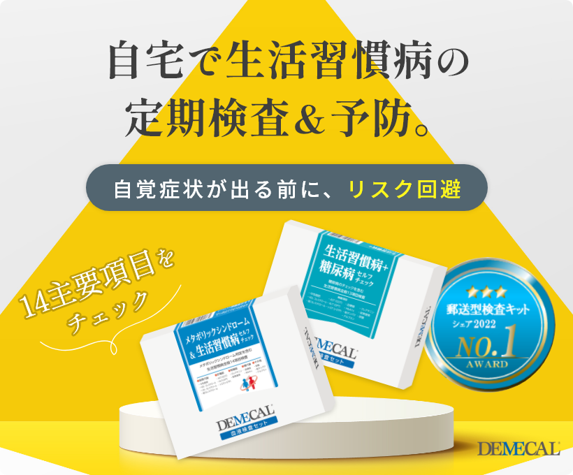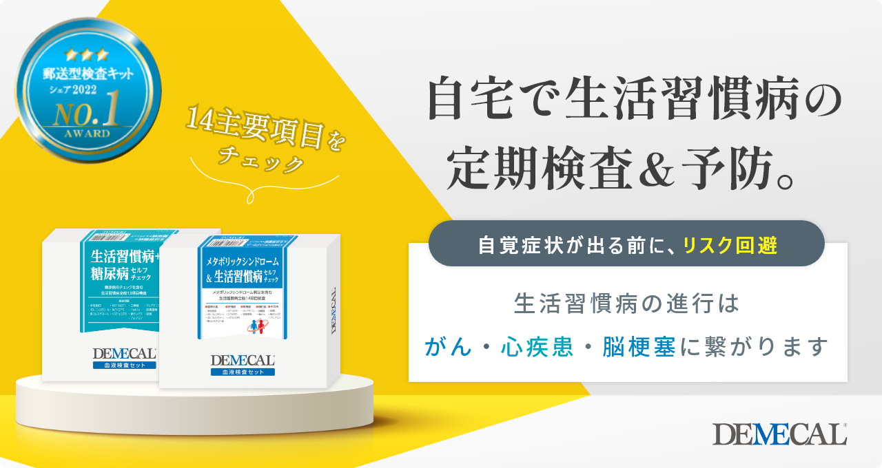 デメカル血液検査キットを使えば、がんリスク・生活習慣病リスク・感染症リスクを簡単に調べることができます。